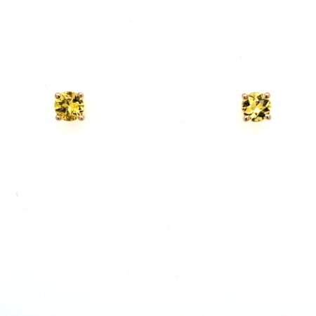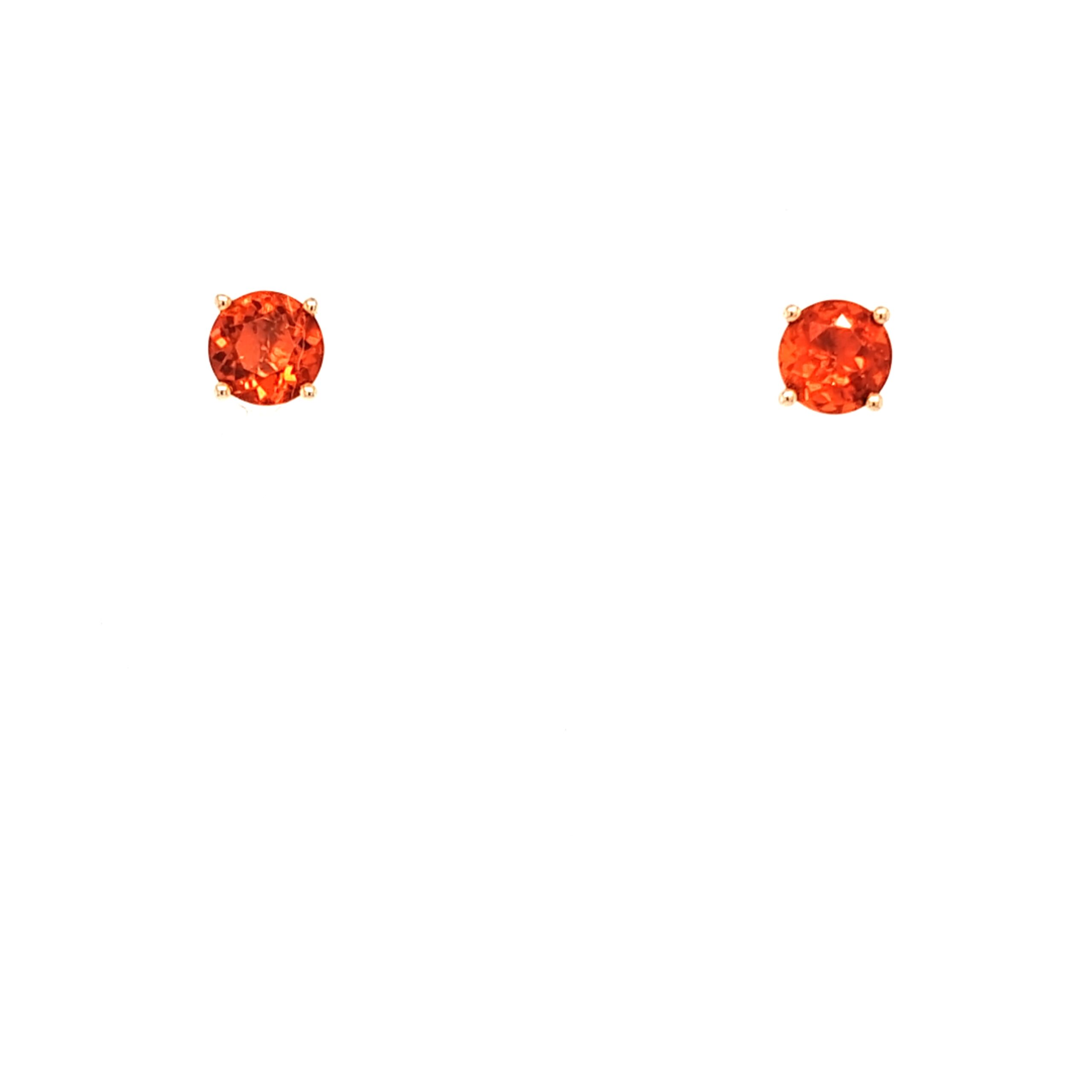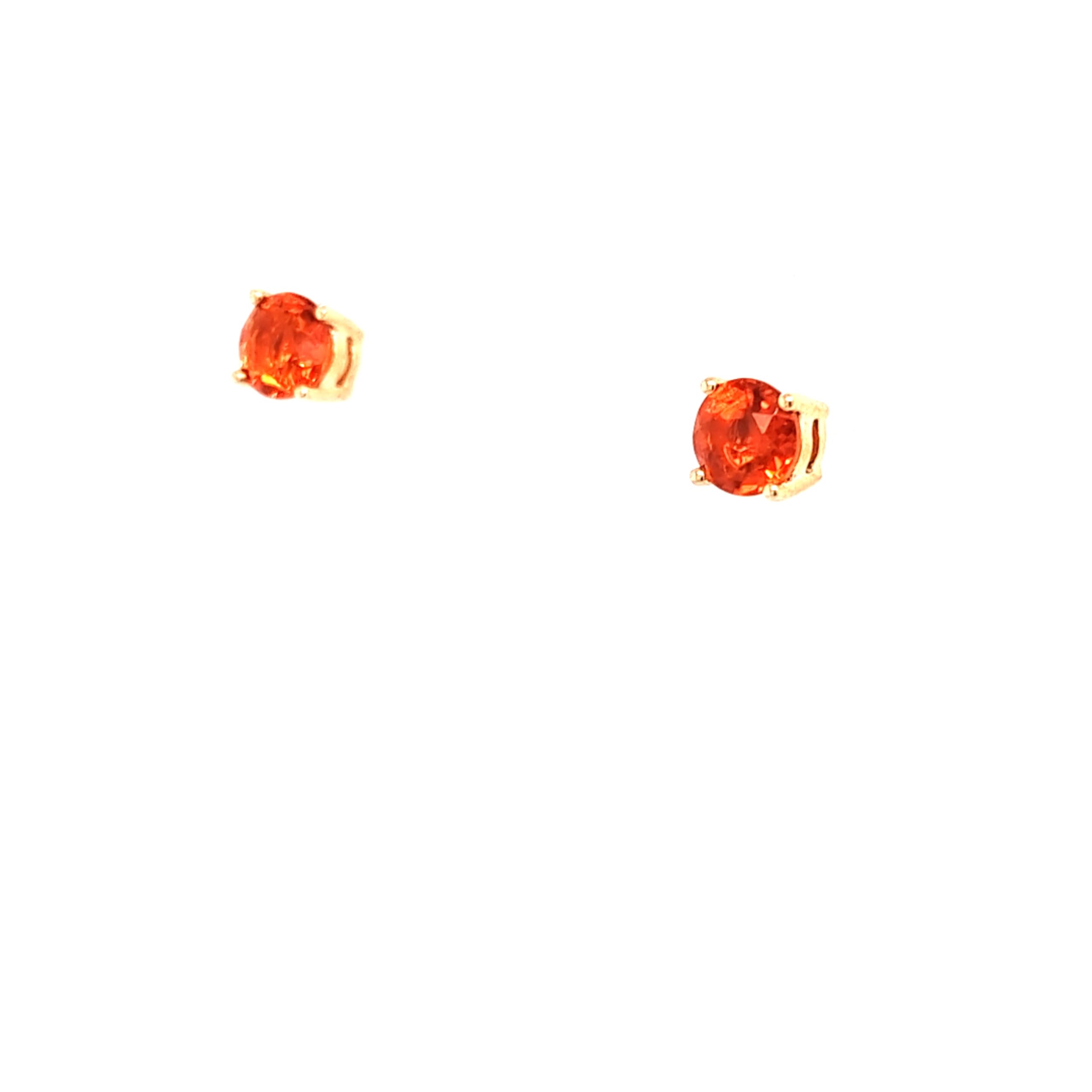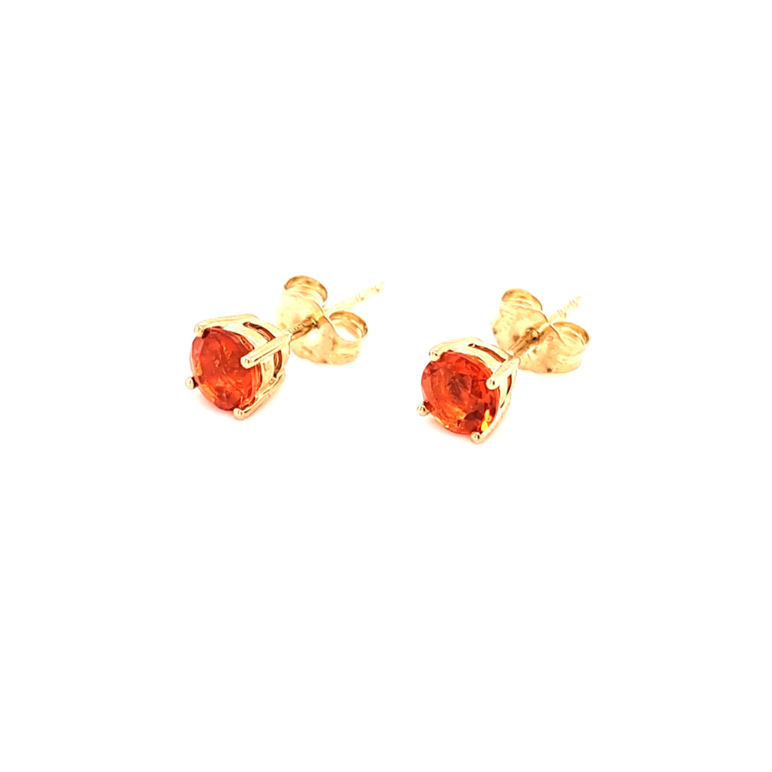 A pair of 9ct yellow gold claw set round cut fire opal stud earrings on post and scroll fittings. 5mm wide.
