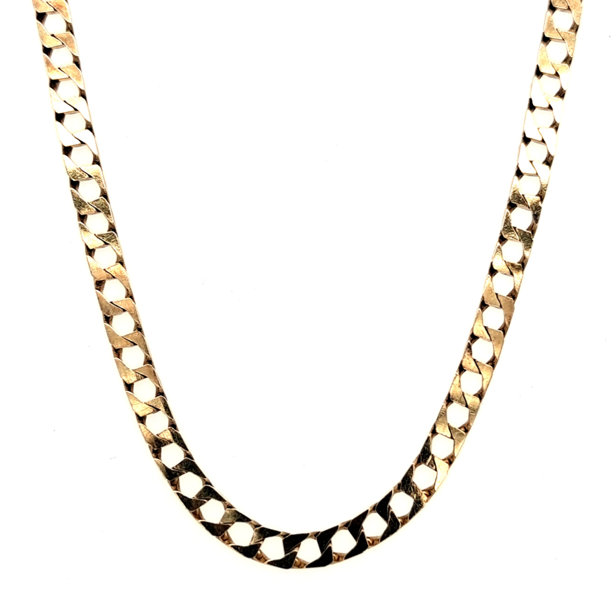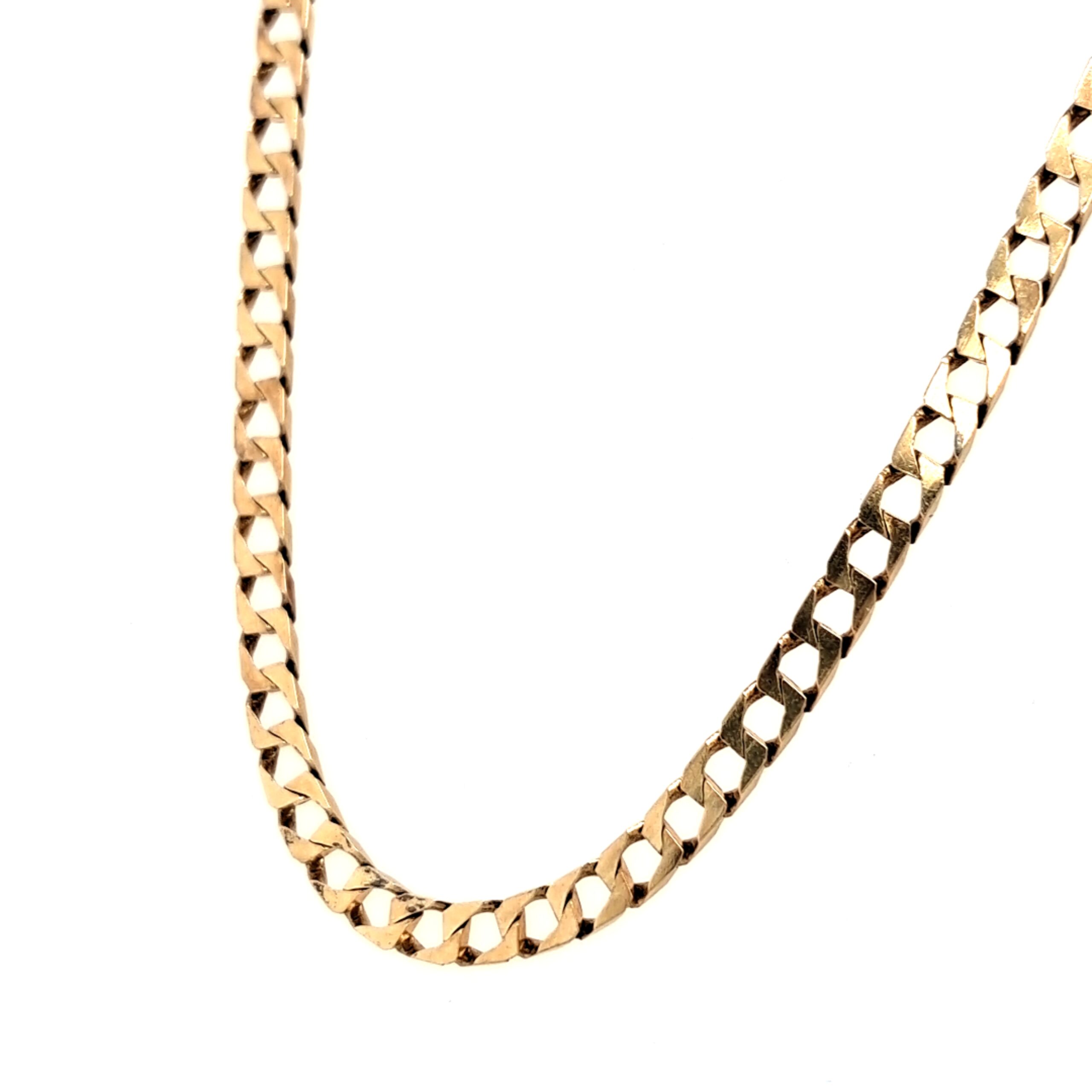 A 9ct yellow gold flat curb pattern 18″ chain. Weight 7.29g. Width 3.2mm.