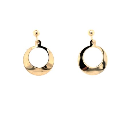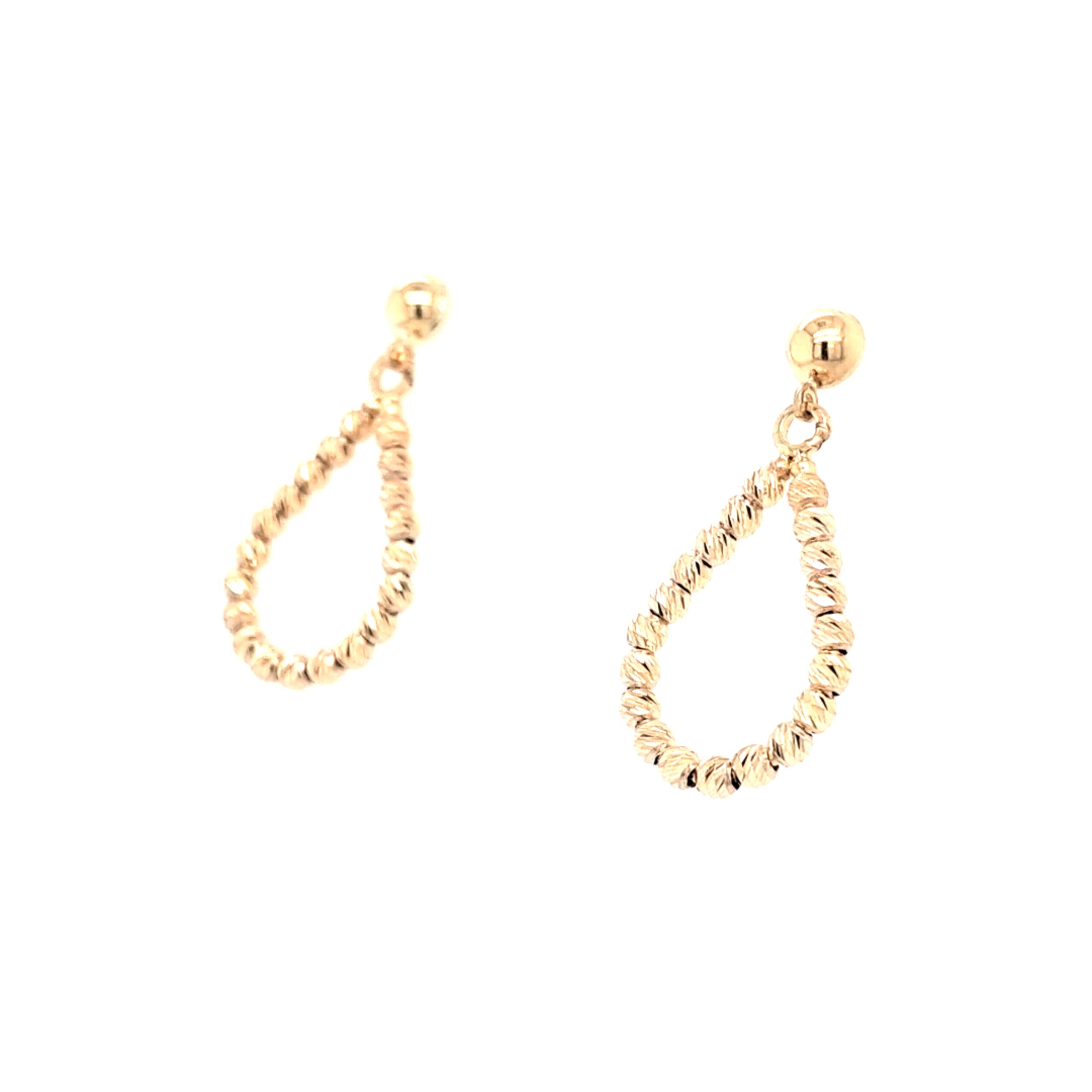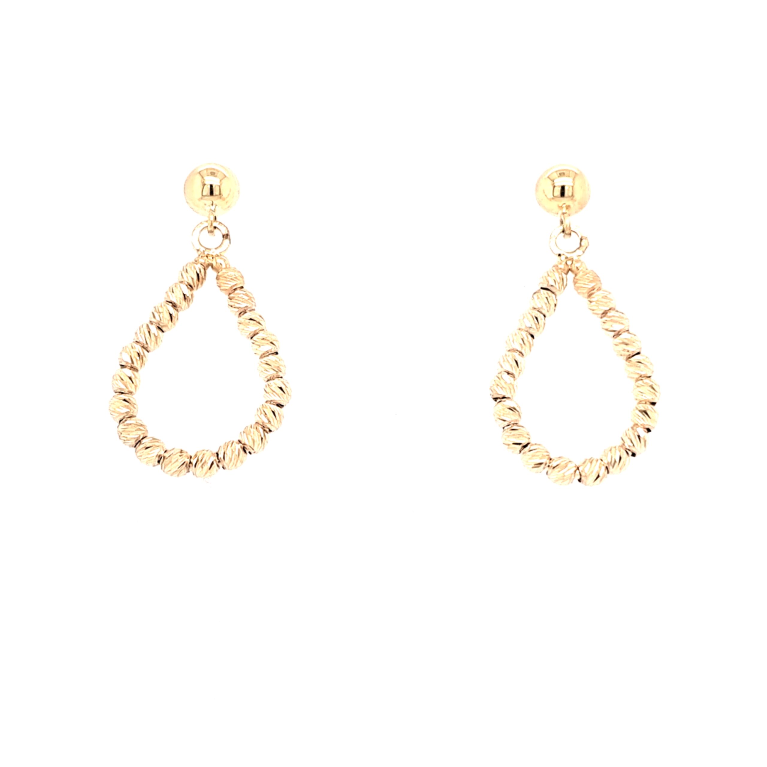 A pair of 9ct yellow gold open pear-shaped diamond cut drop earrings on post and scroll fittings. 24 x 12mm.