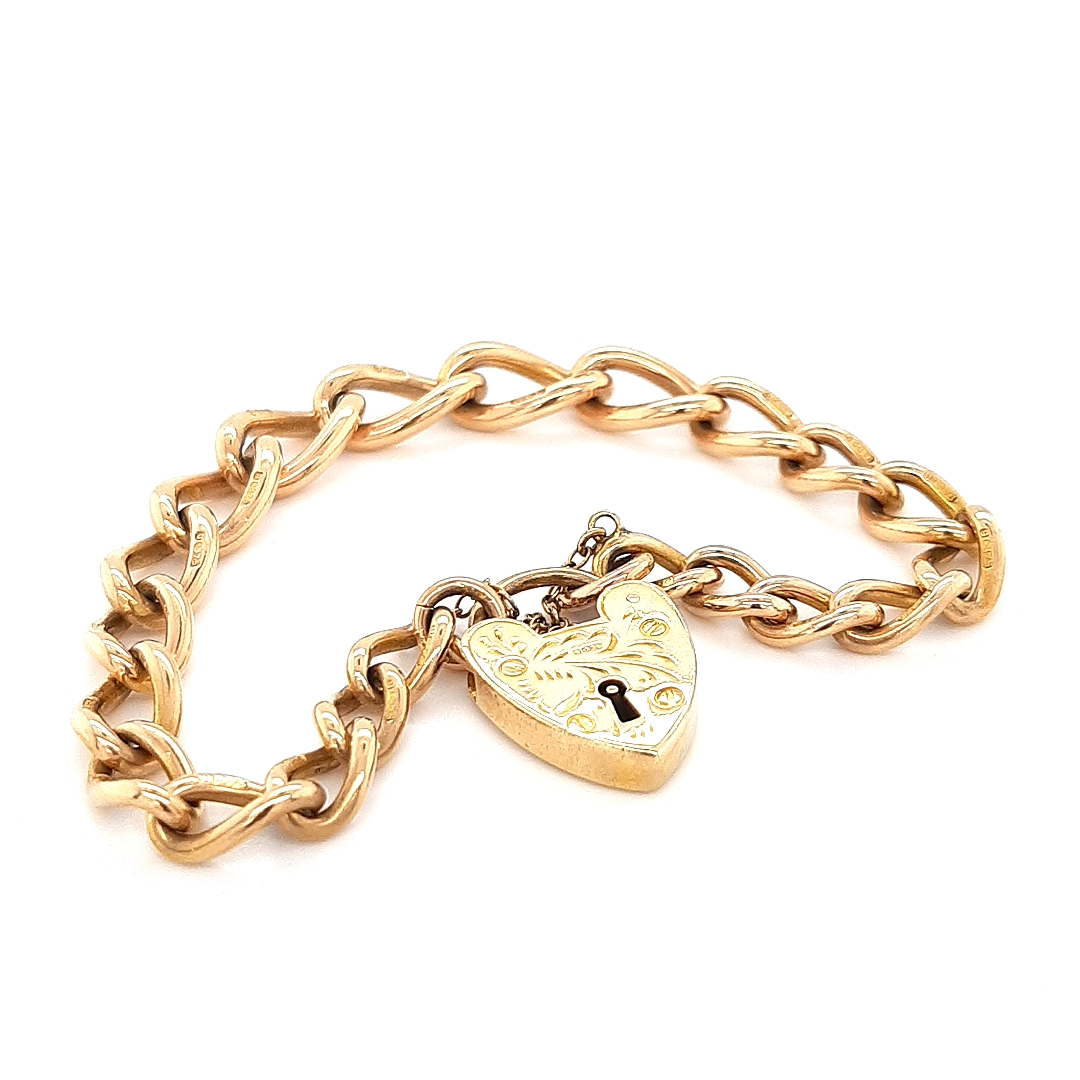 9ct rose Gold curb pattern bracelet with engraved padlock