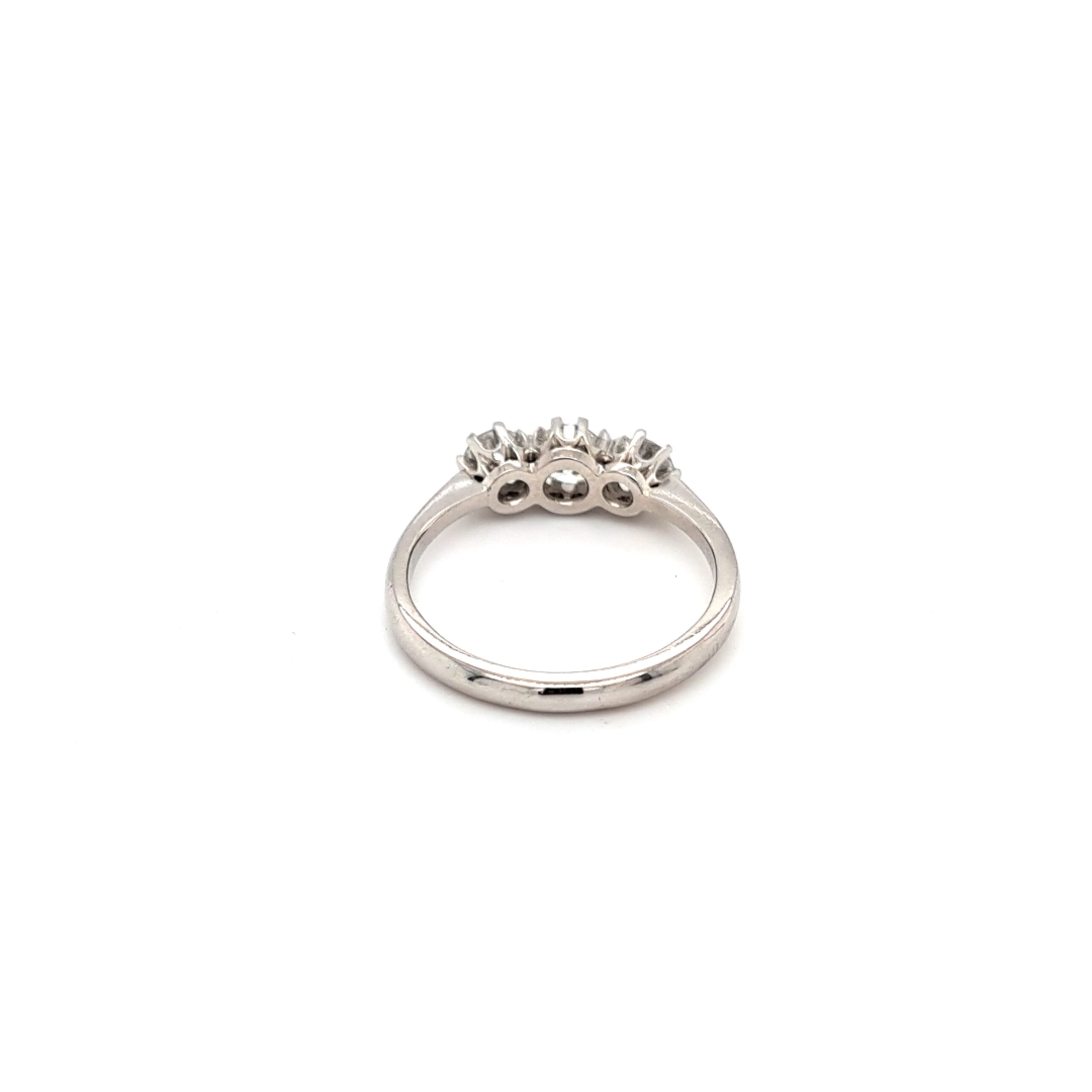 Diamond weight centre 0.32ct, side stones 0.50ct. Ring head measures 5 x 13.5mm.